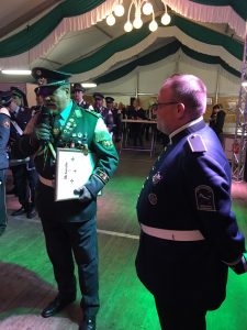 Bevor aber S.M. Markus Schmitz und Königin Bianka Derichs im Mittelpunkt standen galt es, einen alten Freund zu ehren: Richard Hanke, seines Zeichens Major des Tambourcorps Elsen-Fürth und langjähriges Mitglied der Bruderschaft wurde für seine 50jährige Tätigkeit in Hemmerden geehrt. Der erste Vorsitzende überreichte ihm einen Verdienstorden und eine Urkunde und lobte nicht nur sein musikalisches Können, sondern auch sein stetiges überragendes Engagement. Sein Tambourcorps spielte danach noch ein Ständchen für seinen Major bevor es etwa eine Stunde später zur Begrüßung und dem Ehrentanz des Königspaares und der Zugkönigspaare ging. Zur Band „Klangsstadt“, die wieder einmal die Stimmung richtig einheizte, wurde dann noch lange gefeiert. Der Sonntag wartete nicht nur mit Karusssel, Hüpfburg und Spielzeug für die Kinder auf, die Regimentsfahnengruppe hatte es sich zu ihrem Jubiläum auch nicht nehmen lassen ein Frühstücksbuffet zu spendieren. Die „Köhm-Musikanten“ sorgten musikalisch für die Frühschoppenstimmung und der Zirkus Traber gab eine Einlage. So feierten die Hemmerder bis spät in den Nachmittag, bevor viele noch die heimischen Gaststätten besuchten.