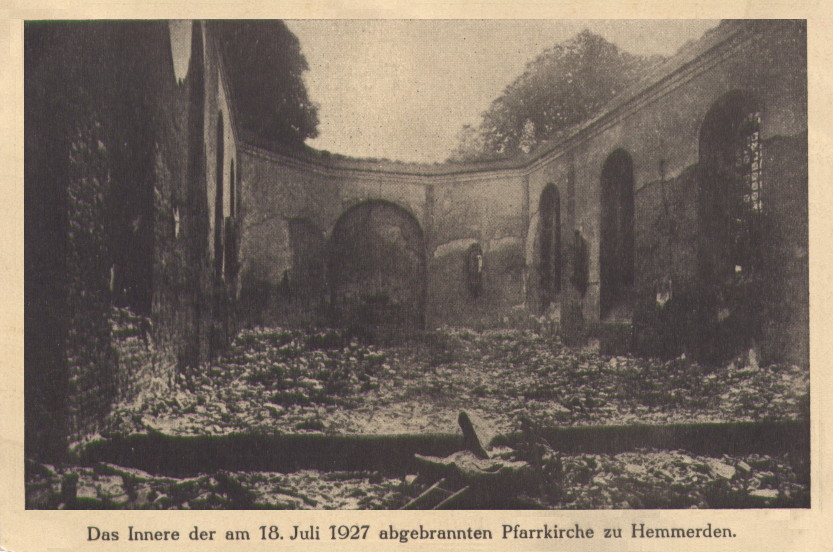 - Das Innere der am 18. Juli 1927 abgebrannten Pfarrkiche zu Hemmerden.