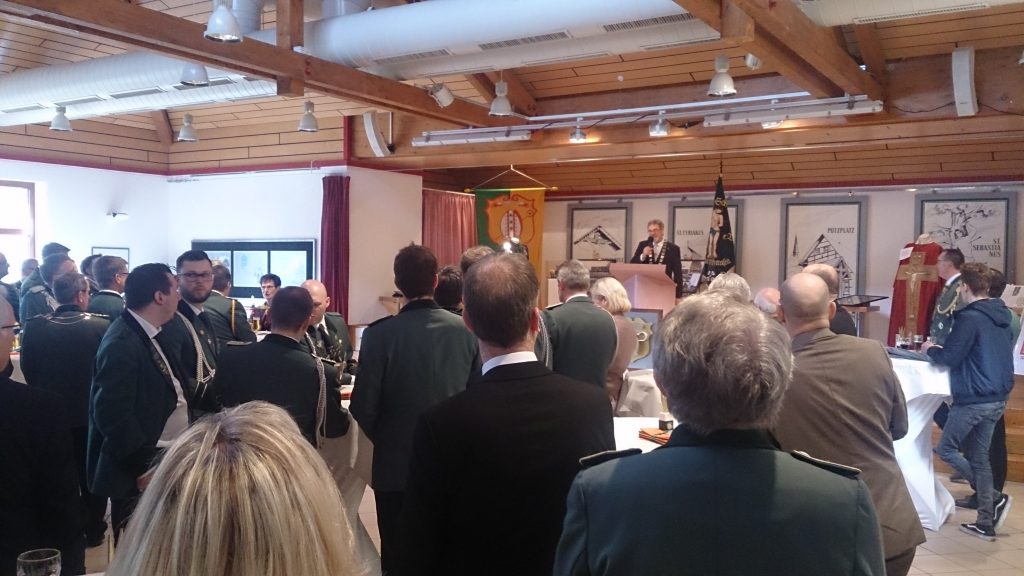350 Jahre – ein stolzes Jubiläum, das die Schützenbrüder der St. Sebastianus Schützenbruderschaft in diesem Jahr feiern können. Dem Jubiläumsreigen von Jubiläumsausstellung, Buenos Dias Colonia, Jubiläumsschießen, Schützenfest, Finale und Bezirkskönigsehrenabend (zu sehen auf www.bruderschaft-neuenhausen.de) vorangestellt hatten die Neuenhausener nun einen sonntäglichen Empfang. Politische Prominenz, Geistlichkeit und befreundete Vereine waren gekommen um zu gratulieren. Da schließt sich die Bruderschaft Hemmerden natürlich gerne an: Alles Gute Richtung Welchenberg! Steht weiter gut zusammen, seid weiter engagiert und feiert schön eure dreieinhalb Jahrhunderte!