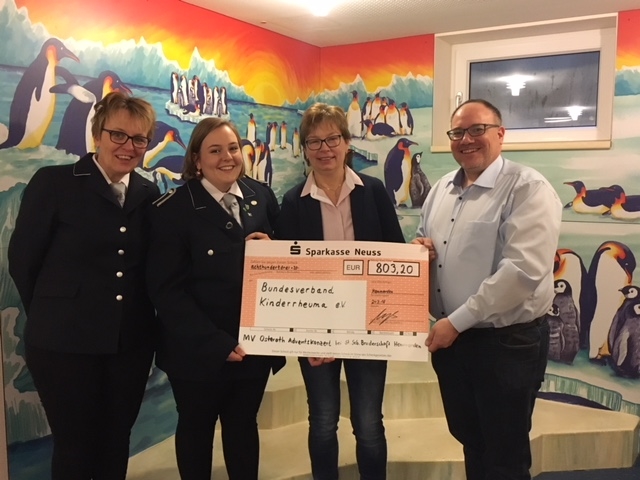 Das Konzert des Musikvereins Osterath bei der St. Sebastianus Schützenbruderschaft Hemmerden fand zwar bereits im Advent statt, der lange Weg bedingte aber, dass erst jetzt die Vorsitzenden Friederike Spee des Musivereins und Markus Deuß der Bruderschaft die offizielle Spendenübergabe an den Bundesverband Kinderrheuma vornehmen konnten.
