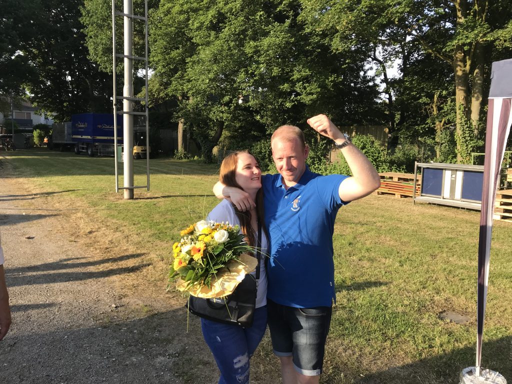 Bei herrlichstem Sonnenschein am Fronleichnamstag, fand auf dem Kirmesplatz das traditionelle Prinzenschießen statt und es sollte zu einer Premiere kommen. Nachdem Grenadiermajor Stefan Drube und Grenadiermajor Adjutant Andreas Koyro das Regiment um 15:00 Uhr am Marktplatz antreten ließen, ging es zu den Klängen des Tambourkorps Elsen-Fürth zur Festwiese, wo das Regiment vom Jägerzug „Blüh Auf“ schon sehnsüchtigst empfangen wurde. Schließlich wurde der Nachfolger von Karl Birbaum gesucht.