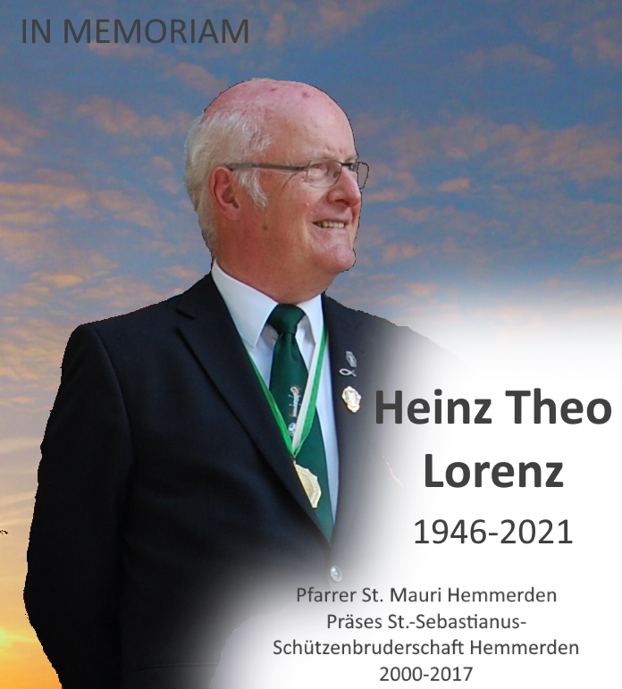 Groß war die Freude als nach zwei Jahrzehnten Vakanz das Amt des Präses der Hemmerder Bruderschaft im Jahr 2000 neu besetzt wurde. Mit der Übernahme der Pfarre St. Mauri durch den Neukirchener Pfarrer Heinz Theo Lorenz nahm er auch dieses Ehrenamt an. Nun müssen wir von Heinz Theo Lorenz, der nach längerer Krankheit in seiner Geburtstadt Neuss verstarb, Abschied nehmen.