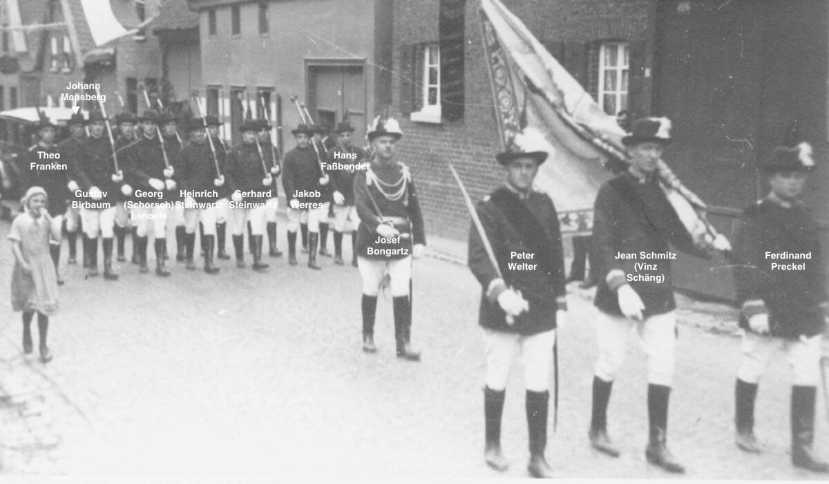Das änderte sich, als im Jahre 1910 verschiedene aktive Mitglieder des Turnvereins wie Theodor Franken, Johann Heupgen, Josef Bongartz, Andreas Schiffer, Christian Wingerath, Johann Bremer u.a. dem letzten Jägerzug beitraten. Da sich in jenen Zeiten kaum eine Abwechslung im täglichen Leben ereignete, das Wort Freizeitgestaltung nur dem Namen nach bekannt war, suchten die jungen Leute in den bestehenden Vereinen wie Turn- und Gesangsverein und Bruderschaft Zerstreuung und Zeitvertreib.