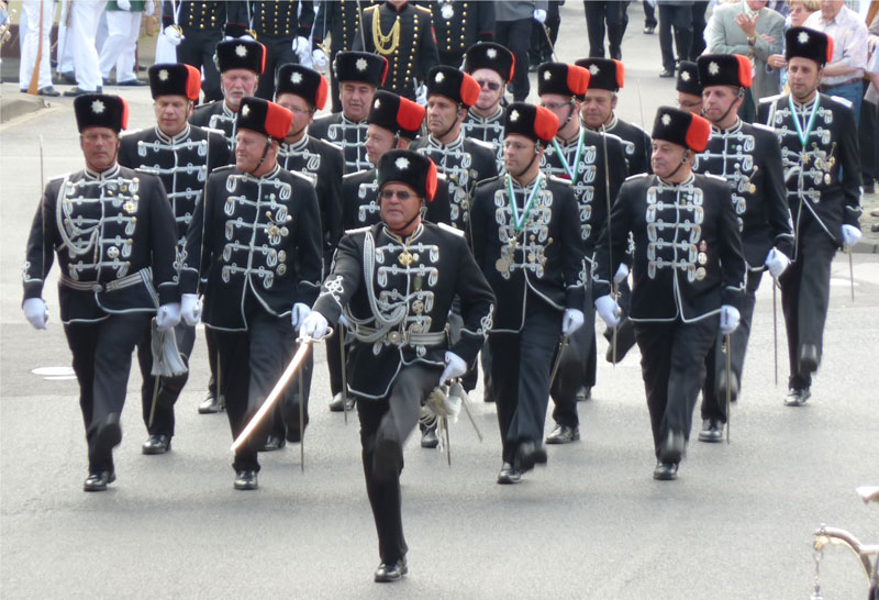 Da die Bruderschaftsregularien (damals wie heute) jedoch keinen Marinezug zuließen, wurde scheinbar entschieden sich von dem üblichen Grenadierblau oder Jägergrün mit einer anderen Uniformfarbe abzusetzen.