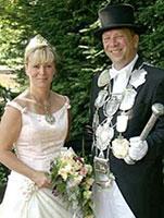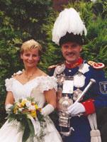 Das nächste Jahr stand ganz im Zeichen des Königpaares Willi und Eva Faller. Der Zug hatte in diesem Regentenjahr viel Arbeit, aber auch viel Freude und Spaß. Das beweist z.B. der Ausflug zum Bundesköniginnentreffen nach Vechta. Hier wurde die Regi beim Umzug besonders herzlich von der Bevölkerung aufgenommen. Scheinbar kennt man im Oldenburger Land nur „Grün“ tragende Schützen. Die Aussage einer Zuschauerin, „da kommt die Junggesellenbrigade“ ist in guter Erinnerung.